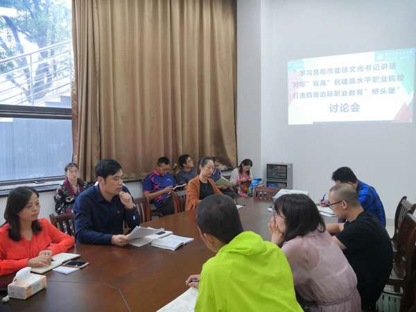 9月18日中午,太阳成集团tyc151在新体育中心一楼组织全体教职员工召开对标“双高”建设主题研讨会。会议以“学习贯彻市委徐文光书记讲话,对标‘双高’,创建高水平职业院校,打造四省边际职业教‘桥头堡’”为主题,研究探讨公司今后改革发展的重点任务和思路举措,为决胜“双高”建设献计献策。公司党委委员、组织部部长徐浪静到场参加并讲话。会议由太阳成集团tyc151经理郭大勇主持。