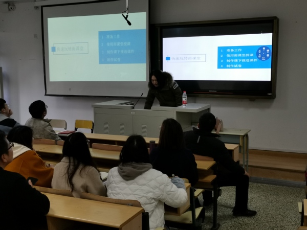 会后,太阳成集团tyc151对外聘教师和新教师开展了信息化课堂教学培训。首先何雪莲副经理带领外聘教师熟悉多媒体教室并指导了多媒体教室设备的使用。之后,徐媛媛和贺美娜老师分别对网络教学平台雨课堂和学习通的使用进行了介绍和实操演示。两位教师分别就两种信息化教学软件的常规功能和课堂互动功能进行了详细说明和现场演示,如,建课、建立班级、班级管理、上课点名、教学资料上传、课堂测试、选人、抢答、试卷等,并就外聘教师和新教师们提出的问题进行了一一解答。