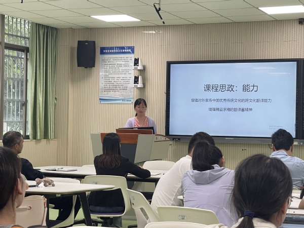 9月份应用英语、休闲体育以及公共体育专业教师围绕课程思政分别进行了教学设计、思政案例方面的研讨,并推选出典型案例作为示范。在本次沙龙中,各专业推选的优秀教师分别作了经验分享。王俊舰以《思为先,政为果》为题,围绕为什么要思政、课程思政特点与误区等内容交流心得,从宏观教学理念方面说明课程思政的重要性,并结合休闲体育专业特点和户外运动课程情况,分享课程思政教学设计思路。彭晓倩作了《大学体育课程思政建设的实现路径探析》的汇报,立足大学体育课程思政建设的价值、实践路径阐述课程思政重要意义,通过对女排精神进课堂的实例解读,剖析公共体育课程思政元素点以及新型教学手段的使用效果。吾雅平就《景点介绍翻译——黄鹤楼》进行专题交流,以微观案例为着眼点,从用英文讲述景点故事、用翻译解读景点介绍、用导游词传播中国声音等角度引导员工弘扬精益求精的翻译家精神,增强家国情怀,将专业知识教学与思政教学深度融合。