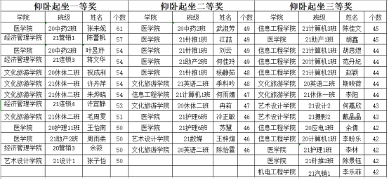 本次比赛项目设置了一分钟仰卧起坐(女生)、一分钟俯卧撑(男生)。本着不聚集、不流动原则,参赛运动员在宿舍中完成比赛,公共体育部教师裁判通过视频认定动作的有效次数。