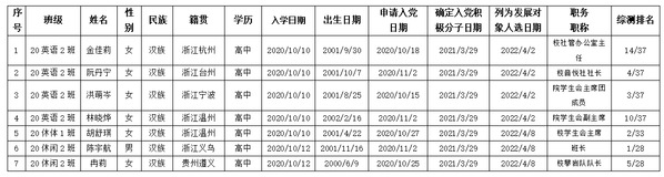 经支委会研究、党委预审同意,拟将以下 7 名发展对象吸收为中共预备党员,现将其有关情况予以公示。在公示期间,欢迎广大党内外群众通过信函、电话或直接反映问题。反映问题应实事求是、客观公正,以个人名义信函反映问题提倡署真名实姓。