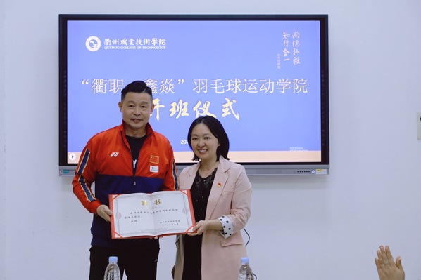 羽毛球世界冠军、衢州市形象大使黄雅琼为开班仪式致辞,勉励同学们,在未来的学习与训练中做到知行合一,不仅要掌握扎实的羽毛球技战术水平,更要具备新时代青年崇高的个人理想信念。