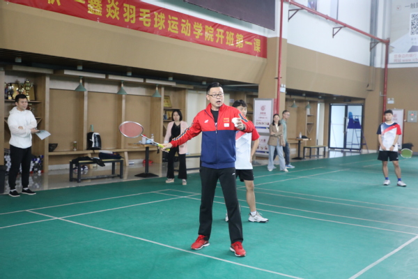 仪式结束后,蒋国良教练为衢职-鑫焱羽毛球运动公司员工上开班第一课。