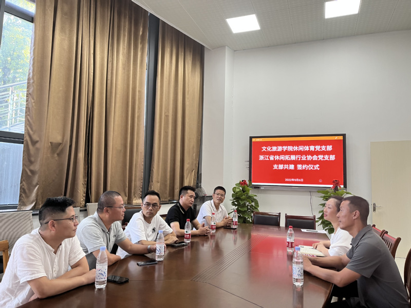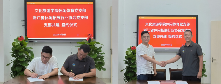 最后,公司休闲体育党支部书记王俊舰与浙江省休闲拓展行业协会党支部李遥其完成了支部共建协议书的签订。