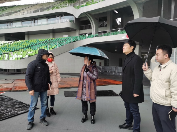 衢州珠江文体发展有限公司市场营销部经理马敏毅、行政人事部经理陈旭霞带领周部长一行人参观了衢州市体育中心的场馆设施,并对其周边环境、中心布局、承载功能、未来发展等方面进行了介绍。