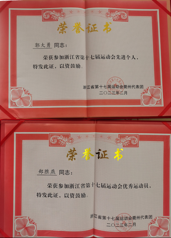 近日,《浙江省第十七届运动会衢州代表团关于表扬衢州市参加浙江省第十七届运动会贡献单位和先进个人的通报》文件下发,公司公共体育部荣获“贡献奖单位”,太阳成集团tyc151(公共体育部)经理(主任)郭大勇获“先进个人”称号,公共体育部教师郑胜燕获“优秀运动员”荣誉。