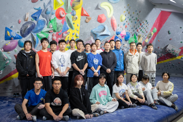 在公司室内攀岩馆,丁祥华与攀岩队的20余位同学们进行了互动交流,现场作了技术指导。