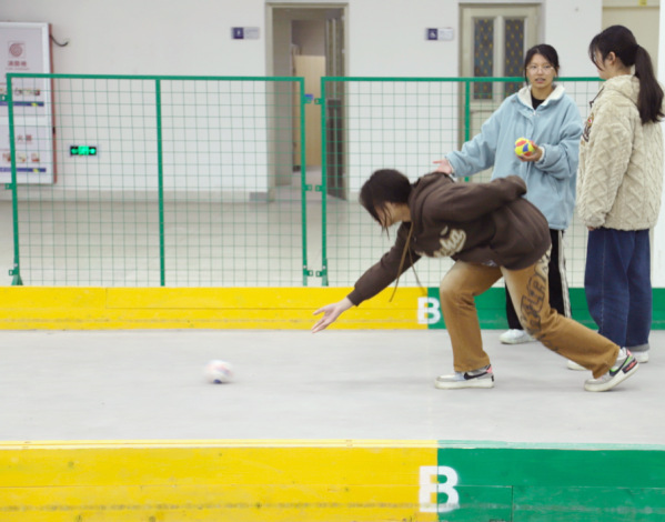 在定点滚靠球比赛中,队员们全情投入,沉着冷静打好每一个球,除了技术上的考验,过硬的心理素质更是取胜的关键。