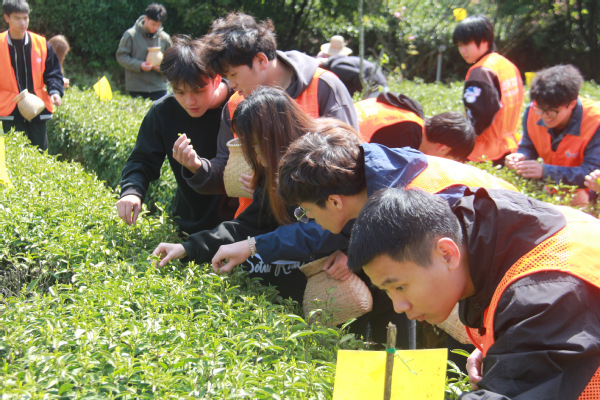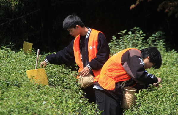 实践出真知,劳动最光荣。同学们在阳光明媚、绿意盎然的茶园中展开“比拼”,每个人都尝试用最快捷、最省力的办法收获最多的茶叶,在劳动中发挥自己的智慧。同学们表示,脚踏实地的劳动让他们感受到了创新思维的魅力,领略到实践的真谛就是创新和进取。