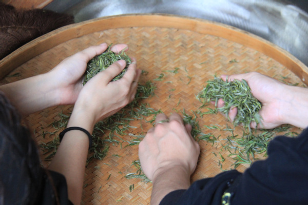 接下来,同学们把自己采摘好的茶叶带到制茶室,工作人员现场为同学们展示了手工炒茶、制茶的方法。同学们认真地学习了炒茶搓、揉、挑、拨、抖的技艺,亲手体验了手工炒茶的过程,感受到茶香的来之不易。