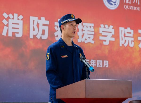 姚水洪指出,去年公司与市消防救援支队建立了全方位、多层次、宽领域的紧密型合作关系,共同创建了衢州市消防救援公司,这是公司服务地方经济社会发展的重大创新,更是拓展人才培养模式、定向培养消防专业人才的重大突破。姚董事长对加入消防大家庭的同学们表示了衷心的祝贺,他希望同学们能谨记“尚德弘毅、知行合一”的校训精神,牢记“赴汤蹈火、竭诚为民”消防精神,以忠诚的“火焰蓝”书写衢职学子的担当。