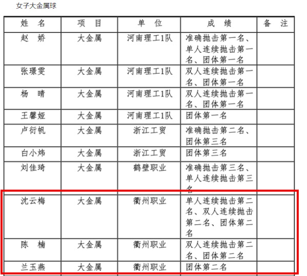 近日,国家体育总局小球中心、中国掷球协会发布了2023年国家队人才备选库第二批入库名单的通知,公司沈云梅、陈楠、兰玉燕等七位同学成功入选运动员人才备选库,校地掷球队教练郑胜燕、张洪柱老师成功入选教练员人才备选库。