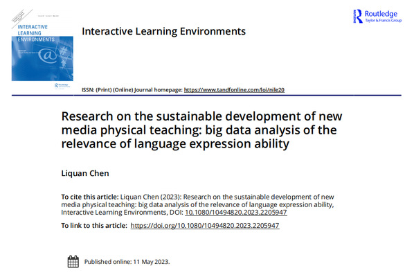 近日,公司陈力全博士在国际权威期刊《互动学习环境》(Interactive Learning Environments,影响因子4.965,SSCI一区)上发表了题为Research on the sustainable development of new media physical teaching: big data analysis of the relevance of language expression ability的学术论文。
