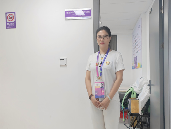 赛时督导工作中,郑花老师工作态度认真负责,对赛时体育展示团队工作环节把控严格,对于体育展示团队工作流程胸有成竹,能够对赛时团队工作人员及时处理出现的突发事件向组委会提出反馈意见。在赛时空隙,郑老师经常与团队成员讨论工作中出现的挑战和问题,复盘整个赛事流程,起到了监督指导作用,并在每日赛事结束后,向组委会提交体育展示督导服务工作汇报。