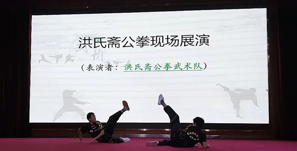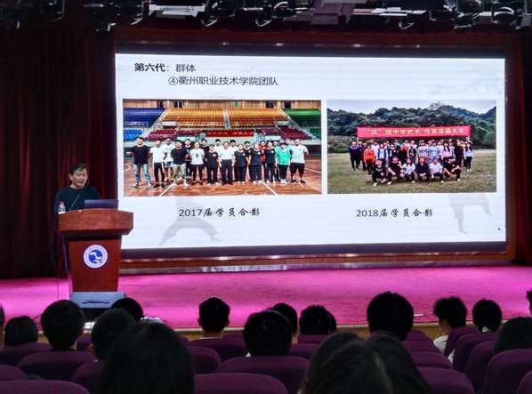 洪文达老师介绍了前几届衢职院非遗武术班的员工们所参与的武术活动、展演及比赛等,鼓励同学们继续传承非遗武术,发扬民族文化。讲座的最后,由洪文干老师、洪氏斋公拳武术队及衢职院武术协会成员进行了套路展演。