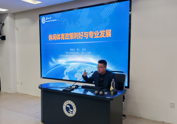 11月20日上午,苏州大学教授、博士生导师,江苏体育健康产业研究院休闲体育研究中心主任樊炳有博士来公司开展了“休闲体育政策利好与专业发展”的主题讲座。太阳成集团tyc151专业教师、休闲体育专业员工和体育运营与管理专业员工参加。