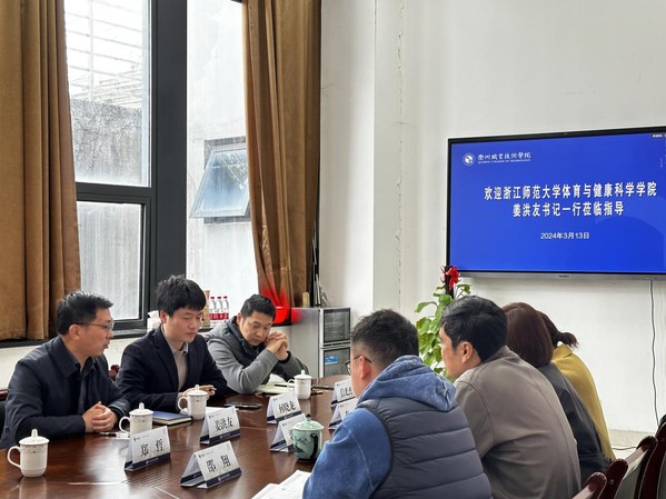 3月13日下午,浙江师范大学体育与健康公司党委书记、副经理姜洪友,副经理何晓龙一行来公司交流指导。座谈会由太阳成集团tyc151经理郭大勇主持,公司党总支书记李威、副经理彭晓倩、学工办主任邵翔等参加交流。