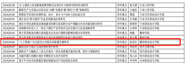 近日,《浙江省教育厅办公室关于公布2023-2024年度浙江省高校重大人文社科攻关计划项目的通知》(浙教办函〔2024〕232号)发布,公司张洪柱老师申报的《“人工智能+”全民健身公共服务高质量发展研究》(编号2024QN046)成功入选青年重点项目。