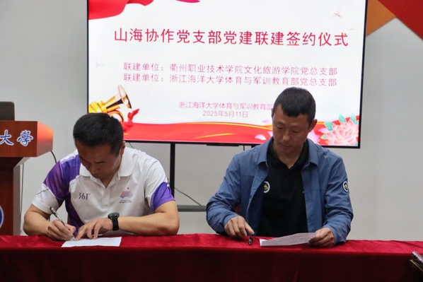 为深入贯彻落实省委“山海协作”战略部署,推动高质量党建引领高质量发展,5月11日下午,文化旅游公司党总支与浙江海洋大学体育与军训教育部党总支举行党建联建签约仪式。